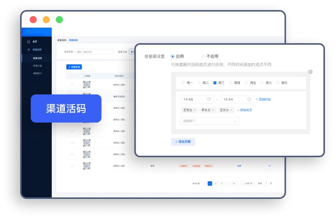 智能化活码随机分配员工,分渠道管理客户,并可对客服人员进行排班管理