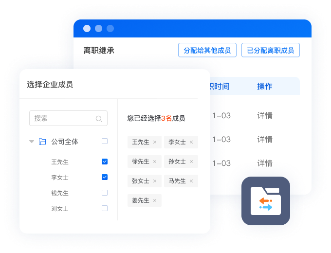 员工离职可一键继承客户资源,客户无感知交接,企业资产不流失